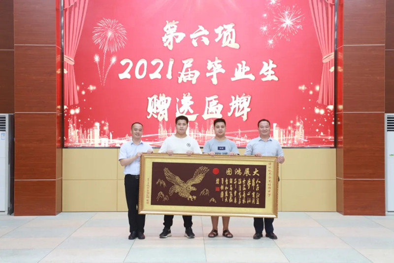 落其實(shí)者思其樹,飲其流者懷其源。我校2021屆畢業(yè)生楊祖峰同學(xué)將“大展宏圖”牌匾送到校領(lǐng)導(dǎo)手中,表達(dá)培育感激之情。