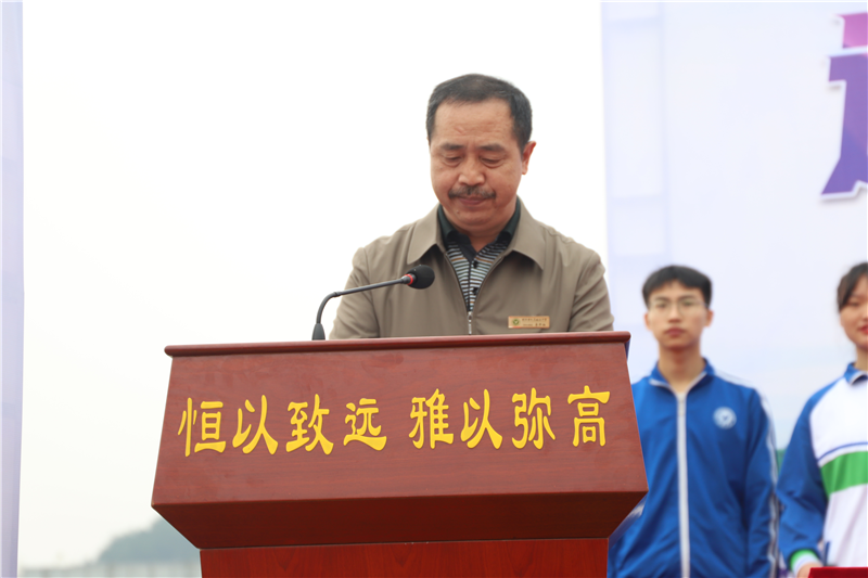 校長(zhǎng)李開(kāi)湘先生為開(kāi)幕式致辭,他指出生活、學(xué)習(xí)、工作,需要不斷提升智力、豐富的情感、健康的心理,更要有強(qiáng)健的體魄、充沛的精力和堅(jiān)韌的毅力。人與人的較量,是綜合能力的較量,而擁有強(qiáng)壯的體魄,是所有的基礎(chǔ)。希望同學(xué)們享受比賽,贏得快樂(lè)!