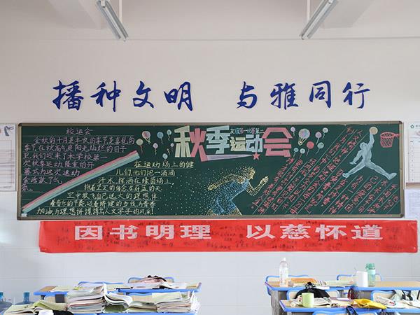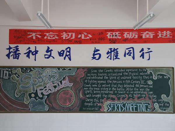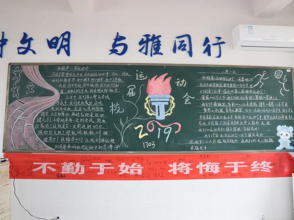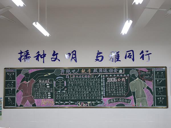 為貫徹《學校體育工作條例》,弘揚體育精神,活躍學校體育文化生活,增進學生、教職工身心健康,更好地展現(xiàn)恒雅師生的“精氣神”,學校舉辦了“運動 健康 文明 快樂”為主題的第三屆校園體育節(jié)。在校辦公室、教務(wù)處、學生處、團委精心策劃下,開展了以運動會為主題的黑板報評比活動,一時間仿佛運動會賽場上的一幕幕展現(xiàn)在了各班的板報上,活靈活現(xiàn)。各班同學充分發(fā)揮創(chuàng)造才能,密切配合,創(chuàng)作出了一幅幅繪畫精美、內(nèi)容充實的黑板報,令人大飽眼福!